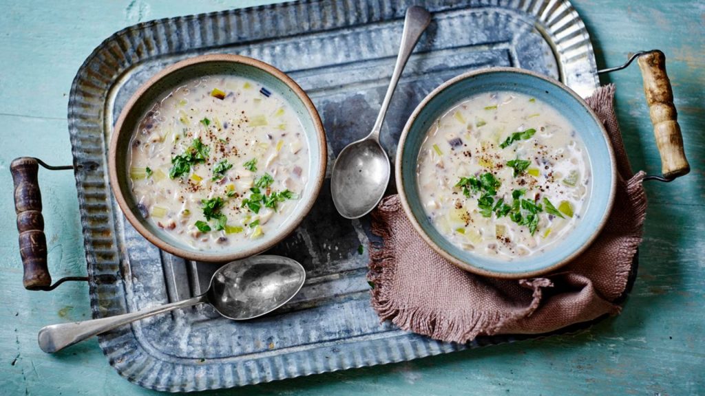 a warming starter or side, a hearty soup is a staple in Scottish cooking. Serving this one with crusty bread and real butter.